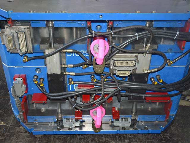 福特电源接头,我们通过与客人的检讨,对产品进行优化,使产品能够顺利包胶,并吹气加顶出进行产品强脱,完成注塑。