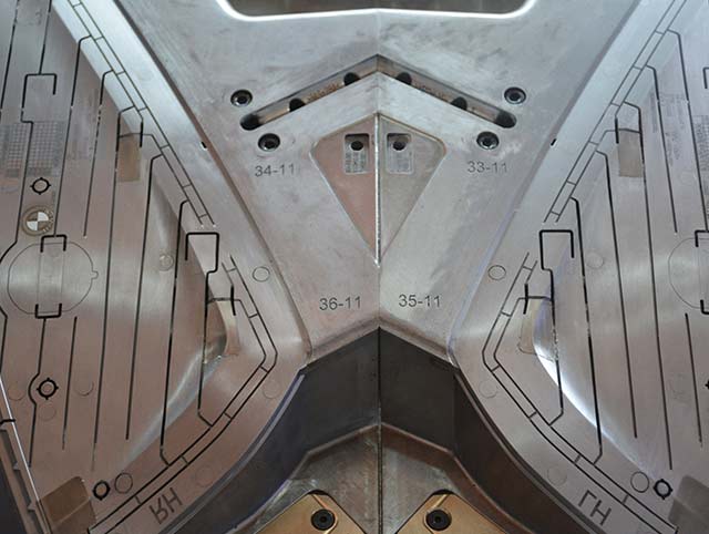 BMW end cap 1000T大型星空游戏中心安卓,前模顶出需要开模同时沿分型面顶出,合模需要分型面推前模顶出系统回位,经过我们工程团队前期跟客人提出的有效建议对产品的优化,结果模具试模一次成功。