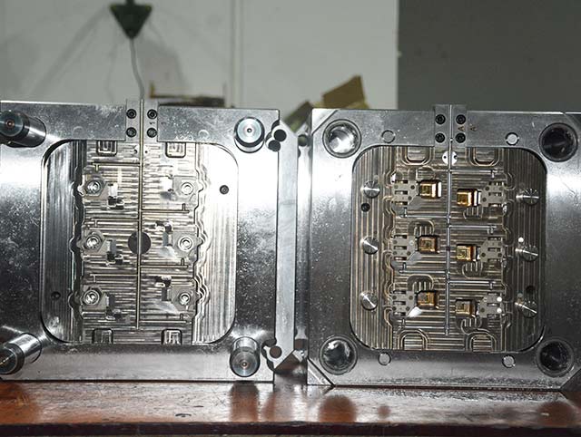 福特电源接头,我们通过与客人的检讨,对产品进行优化,使产品能够顺利包胶,并吹气加顶出进行产品强脱,完成注塑。