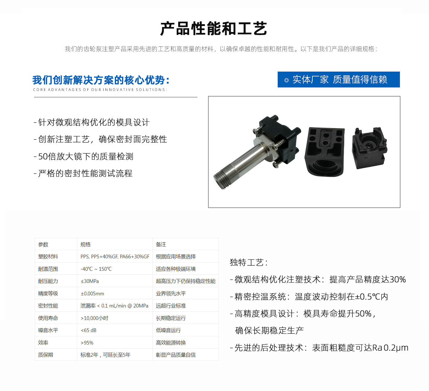 产品用途:广泛应用于汽车燃油系统、医疗设备流体控制、工业自动化阀门及家电水阀等领域,特别适合需要轻量化、防锈蚀的精密流体传动场景。